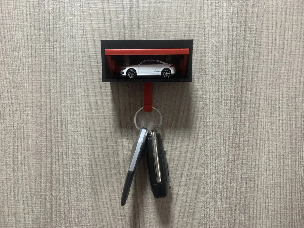 - Calidad de Impresión 3D: Fabricado con filamento de alta calidad, cada pieza tiene un acabado detallado que resalta las texturas de la “puerta” de garaje y la estructura del soporte.